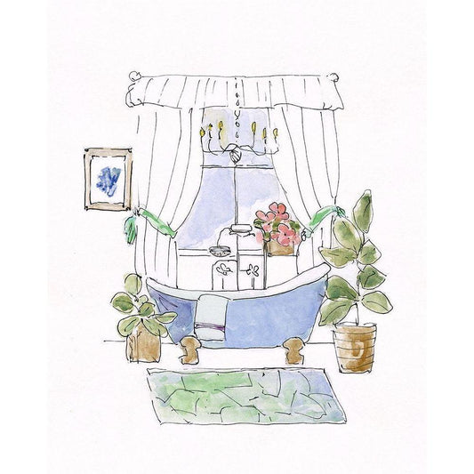 Sketchy Bath I White Modern Wood Framed Art Print by Swatland, Sally