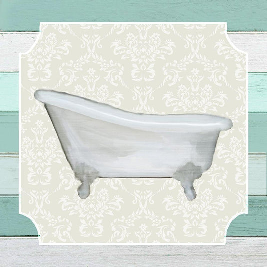 Damask Bath 1 White Modern Wood Framed Art Print by Kimberly, Allen