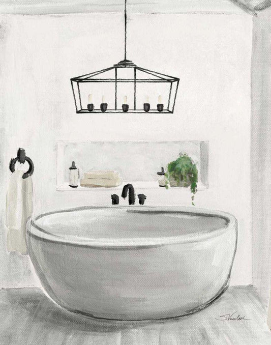 Attic Bathroom I Light Crop White Modern Wood Framed Art Print with Double Matting by Vassileva, Silvia