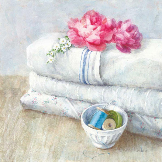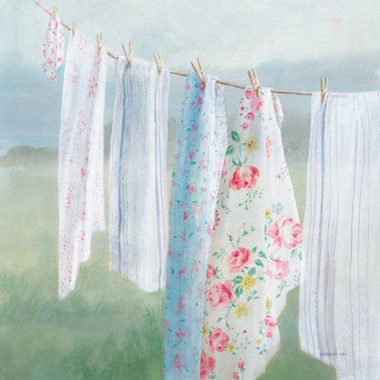 Laundry Day I White Modern Wood Framed Art Print with Double Matting by Nai, Danhui