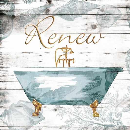 Golden Coastal Bath White Modern Wood Framed Art Print by Grey, Jace