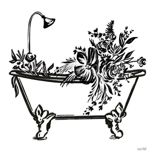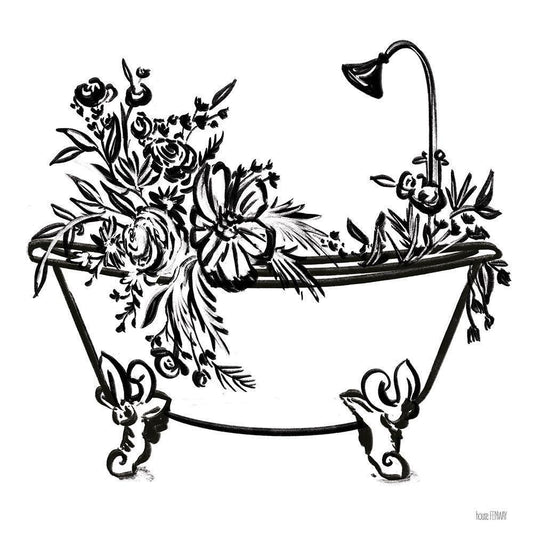 Vintage Floral Tub I Gold Ornate Wood Framed Art Print with Double Matting by House Fenway