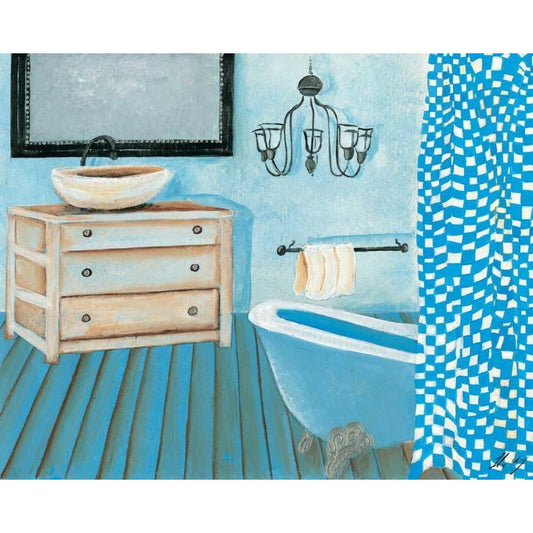 Bathroom in blue III Gold Ornate Wood Framed Art Print with Double Matting by Jasper