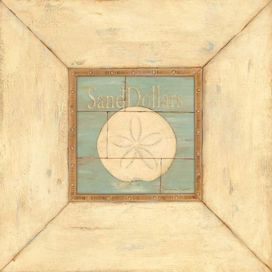 Sand Dollars on Blue Gold Ornate Wood Framed Art Print with Double Matting by Marrott, Stephanie