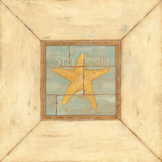 Starfish on Blue Gold Ornate Wood Framed Art Print with Double Matting by Marrott, Stephanie