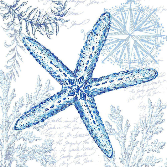 Coastal Sketchbook-Starfish Gold Ornate Wood Framed Art Print with Double Matting by Tre Sorelle Studios