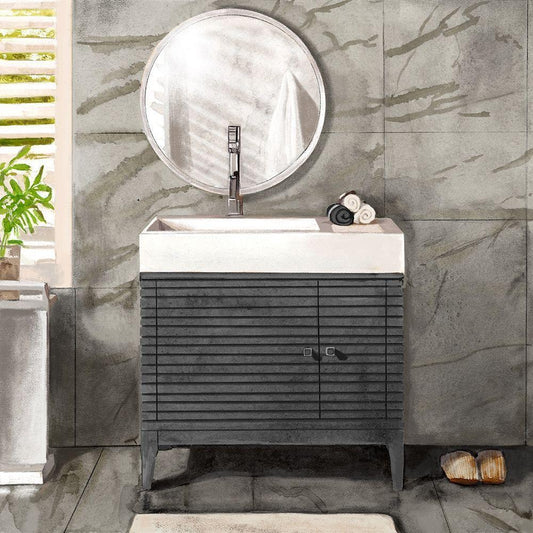 Serene Bath I black and white Gold Ornate Wood Framed Art Print with Double Matting by Bannarot