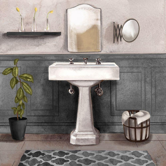 Farmhouse Bath II navy-Sink Gold Ornate Wood Framed Art Print with Double Matting by Reed, Tara