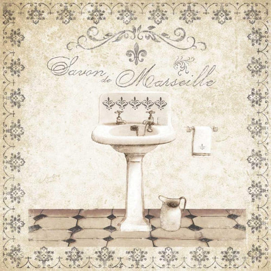 Fleur de Lis Bath Panel II Gold Ornate Wood Framed Art Print with Double Matting by Cusson, Marie Elaine