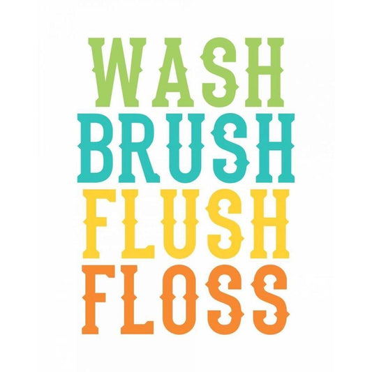 Wash, Brush, Floss, Flush Green Gold Ornate Wood Framed Art Print with Double Matting by Robinson, Tamara