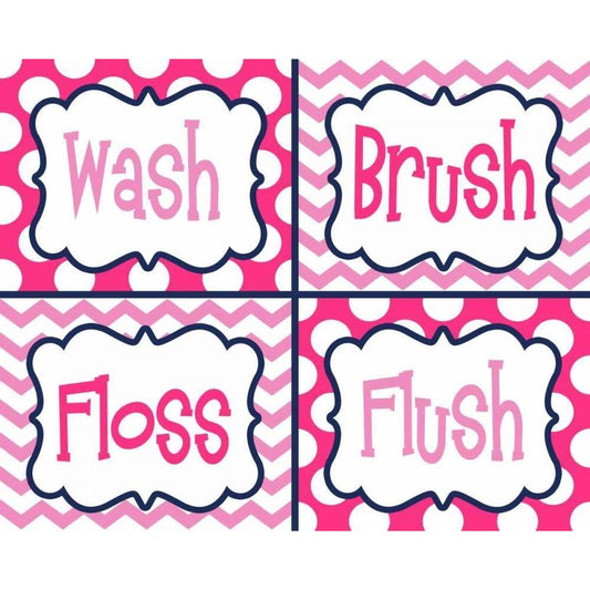 Wash, Brush, Floss, Flush Pink Gold Ornate Wood Framed Art Print with Double Matting by Robinson, Tamara
