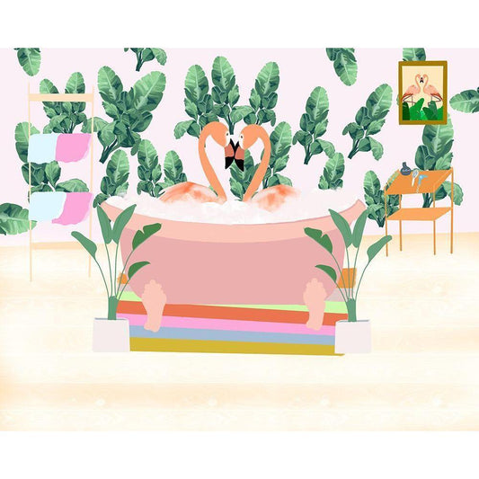 Flamingo Bath Gold Ornate Wood Framed Art Print with Double Matting by Singleton, Ashley