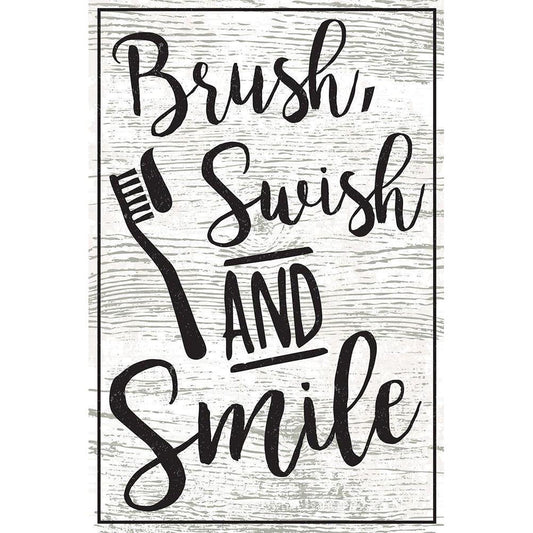 Brush Your Teeth Gold Ornate Wood Framed Art Print with Double Matting by ND Art
