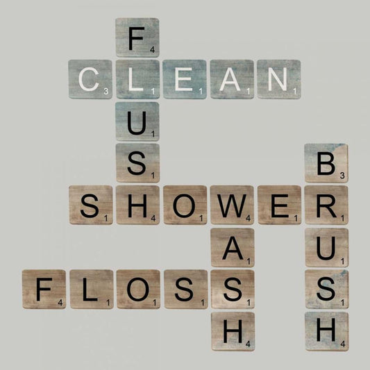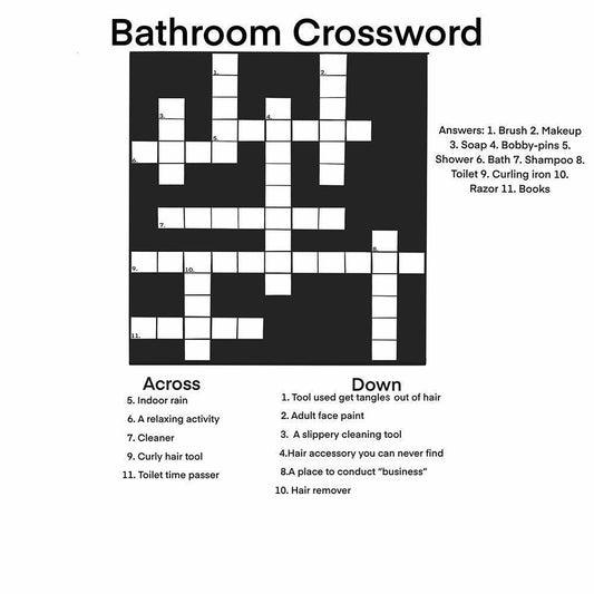 Bathroom Crossword Gold Ornate Wood Framed Art Print with Double Matting by Singleton, Ashley