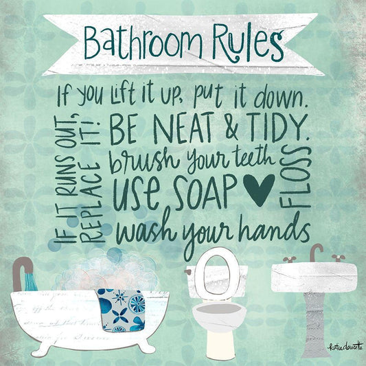 Bathroom Rules Gold Ornate Wood Framed Art Print with Double Matting by Doucette, Katie