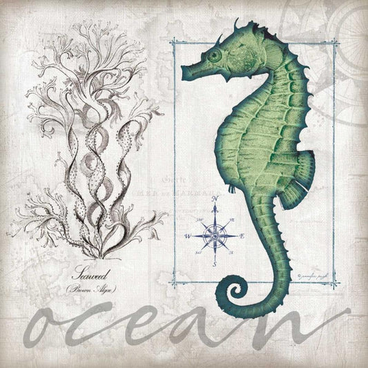 Coastal Seahorse Gold Ornate Wood Framed Art Print with Double Matting by Pugh, Jennifer