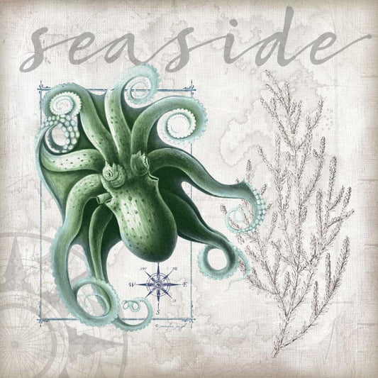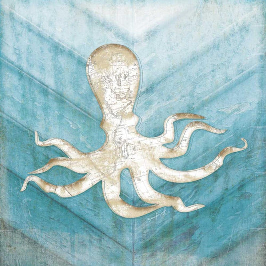 Coastal Octopus Gold Ornate Wood Framed Art Print with Double Matting by Pugh, Jennifer