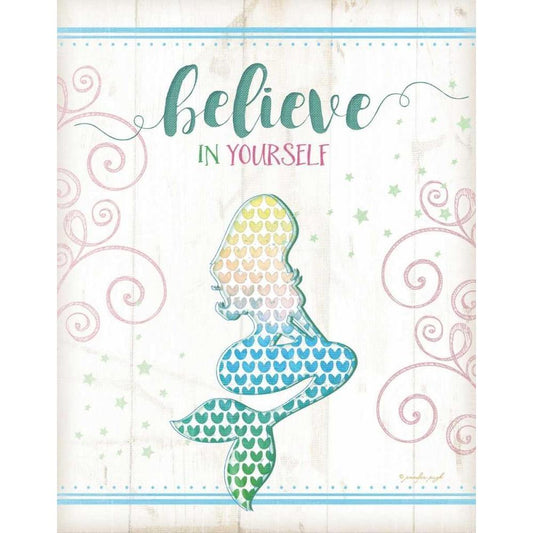 Believe Mermaid Gold Ornate Wood Framed Art Print with Double Matting by Pugh, Jennifer