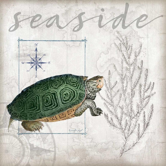 Coastal Turtle Gold Ornate Wood Framed Art Print with Double Matting by Pugh, Jennifer