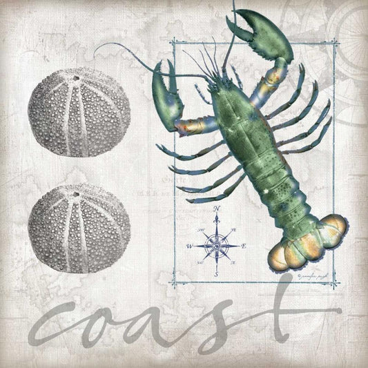 Coastal Lobster Gold Ornate Wood Framed Art Print with Double Matting by Pugh, Jennifer