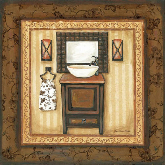 Powder Room Gold Ornate Wood Framed Art Print with Double Matting by Moulton, Jo