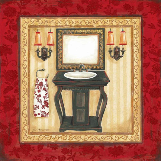 Red Demask Bath I Gold Ornate Wood Framed Art Print with Double Matting by Moulton, Jo