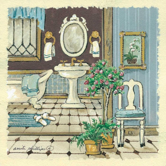 Antique Bath I Gold Ornate Wood Framed Art Print with Double Matting by Phillips, Anita