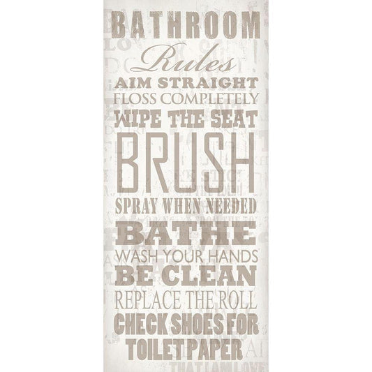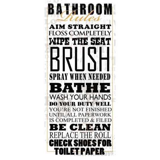 Bathroom Rules - White Gold Ornate Wood Framed Art Print with Double Matting by Baldwin, Jim