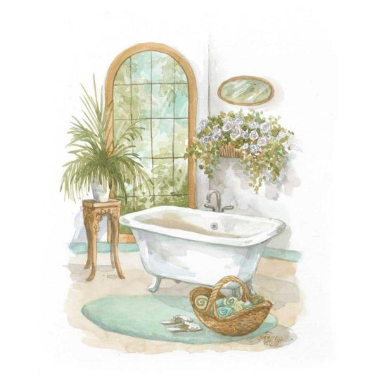 Watercolor Bath in Spa II Gold Ornate Wood Framed Art Print with Double Matting by Van Dijk, Jerianne