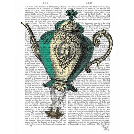 Flying Teapot 1 Green and Yellow Gold Ornate Wood Framed Art Print with Double Matting by Fab Funky