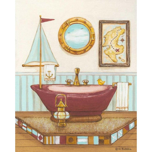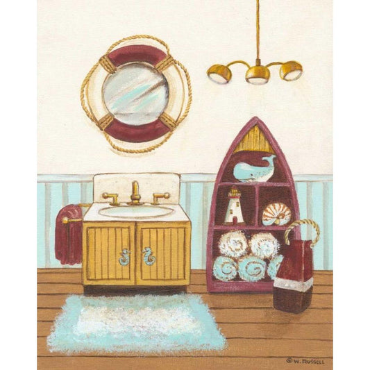 Nautical Bath I Gold Ornate Wood Framed Art Print with Double Matting by Russell, Wendy