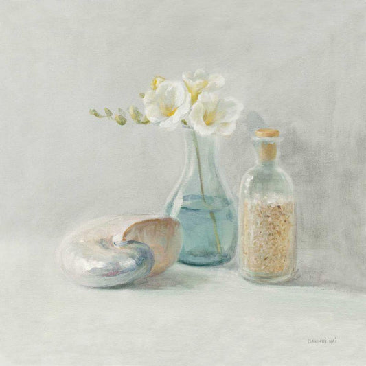 Light White Flower Spa Gold Ornate Wood Framed Art Print with Double Matting by Nai, Danhui
