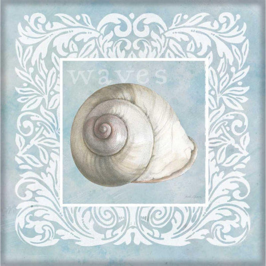 Sandy Shells Blue on Blue Snail Gold Ornate Wood Framed Art Print with Double Matting by Grove, Beth