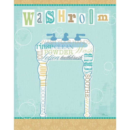 Bathroom Words Sink II Gold Ornate Wood Framed Art Print with Double Matting by Pela Studio