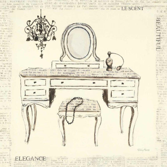 Emilys Boudoir III Table Gold Ornate Wood Framed Art Print with Double Matting by Adams, Emily