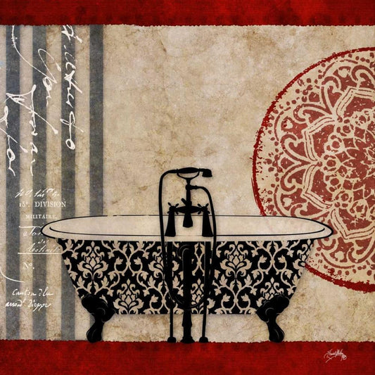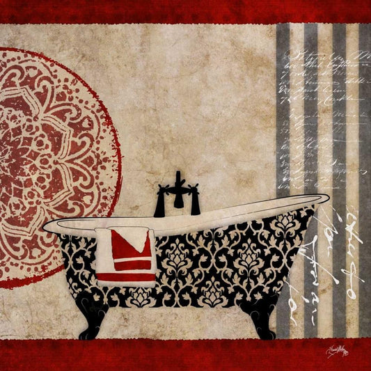 Red Garden Bath I Gold Ornate Wood Framed Art Print with Double Matting by Medley, Elizabeth