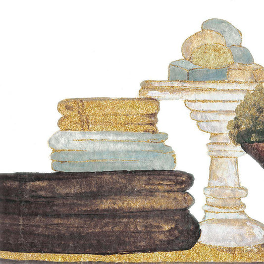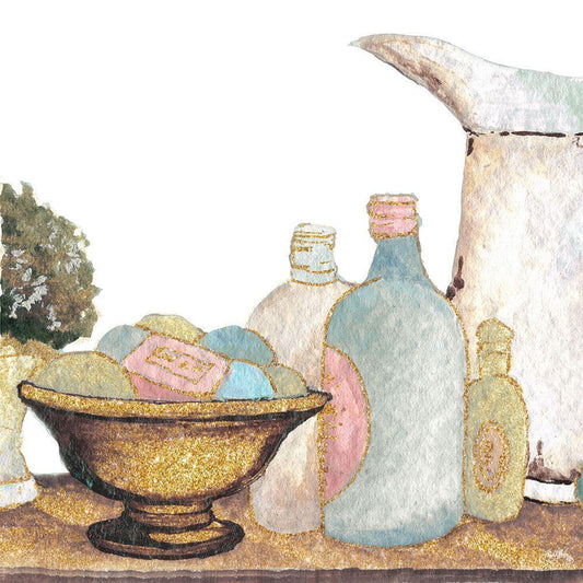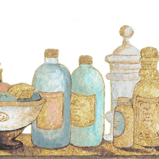 Gold Bath Accessories I Gold Ornate Wood Framed Art Print with Double Matting by Medley, Elizabeth