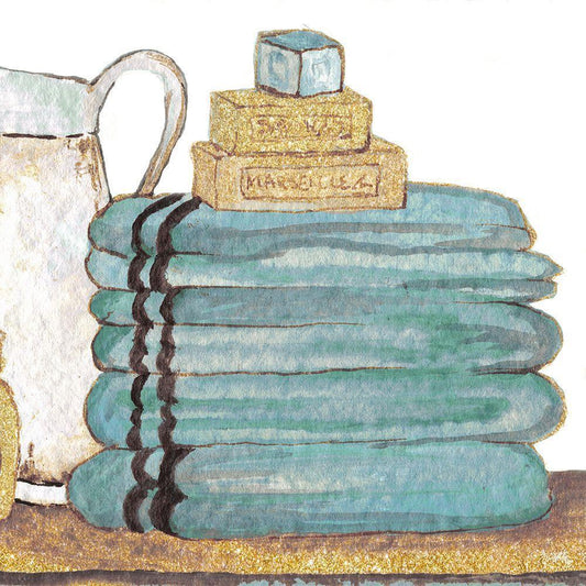 Bathroom I Gold Ornate Wood Framed Art Print with Double Matting by Medley, Elizabeth