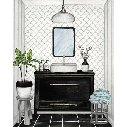 Modern Black and White Bath I Gold Ornate Wood Framed Art Print with Double Matting by Medley, Elizabeth