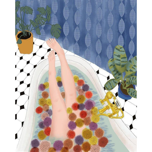 Unwind Bath Gold Ornate Wood Framed Art Print with Double Matting by Quach, Anna