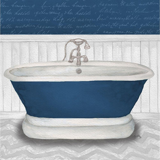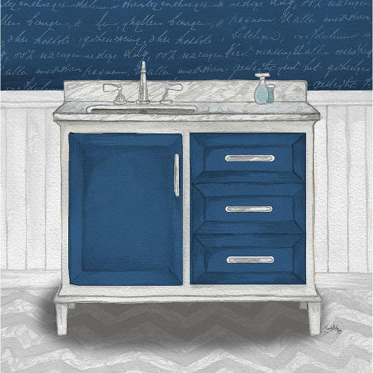 Deep Blue Nautical Bath I Gold Ornate Wood Framed Art Print with Double Matting by Medley, Elizabeth