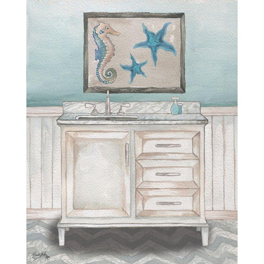 Nautical Bath I Gold Ornate Wood Framed Art Print with Double Matting by Medley, Elizabeth