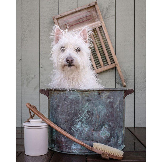 Washing the Dog Gold Ornate Wood Framed Art Print with Double Matting by Fielding, Edward M.