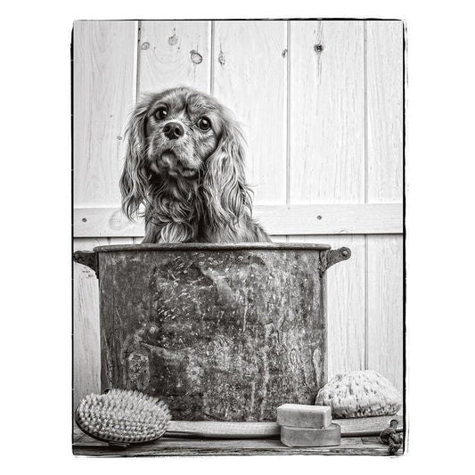 Vintage Puppy Bath Gold Ornate Wood Framed Art Print with Double Matting by Fielding, Edward M.