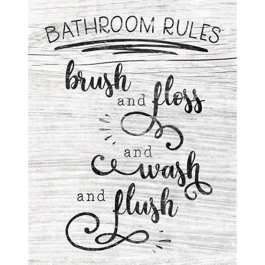 Bathroom Rules Gold Ornate Wood Framed Art Print with Double Matting by CAD Designs
