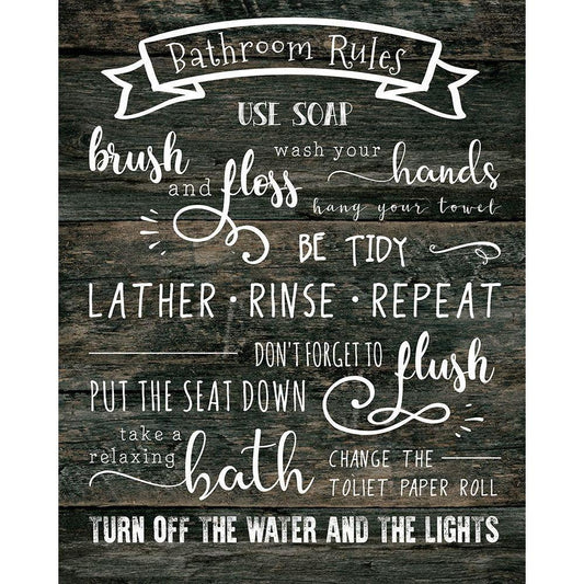 Bathroom Rules Gold Ornate Wood Framed Art Print with Double Matting by CAD DESIGNS