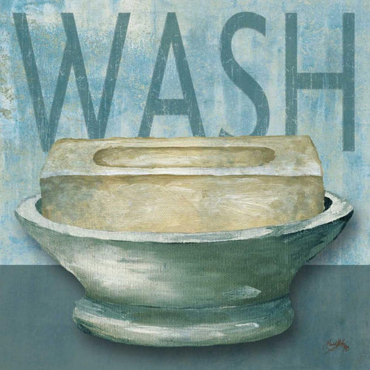 Bathroom Words Sink II White Modern Wood Framed Art Print with Double Matting by Pela Studio