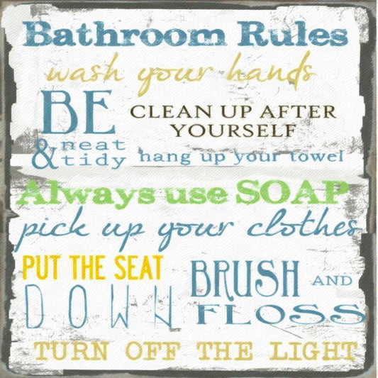 BATHROOM RULES MULTI Gold Ornate Wood Framed Art Print with Double Matting by Greene, Taylor