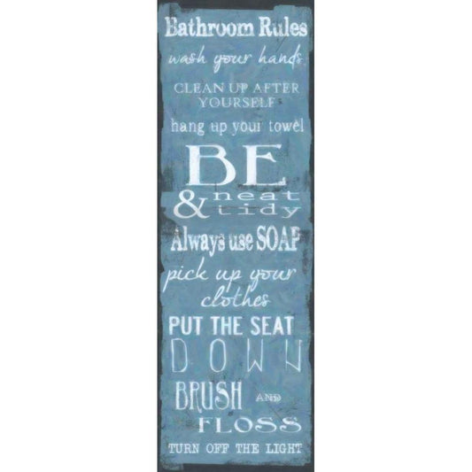 Bathroom Rules Blue White Gold Ornate Wood Framed Art Print with Double Matting by Greene, Taylor