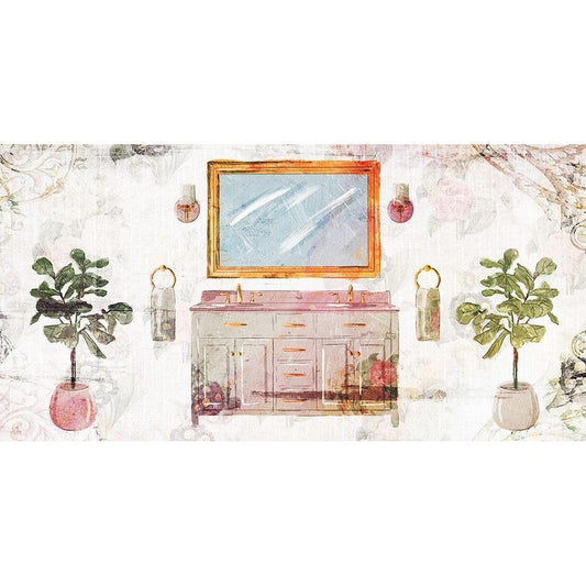 Floral Bathroom 1 Gold Ornate Wood Framed Art Print with Double Matting by Villa, Milli